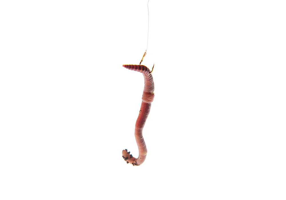 Am besten ködert man einen Wurm so an, dass man den Haken einmal durch die Mitte des Ringlers zieht. Auf diese Weise kann der Fisch den Wurm ansaugen und wird dann sicher gehakt. Auch Fische, die an jedem Wurmende anfangen zu nagen, stoßen früher oder später auf den Haken. Ein in der Mitte gehakter Wurm lässt sich extrem natürlich präsentieren. Und Fische wie Barsche und Zander inhalieren den Wurm ohnehin in einer Saugbewegung und hängen dann sicher am Haken.