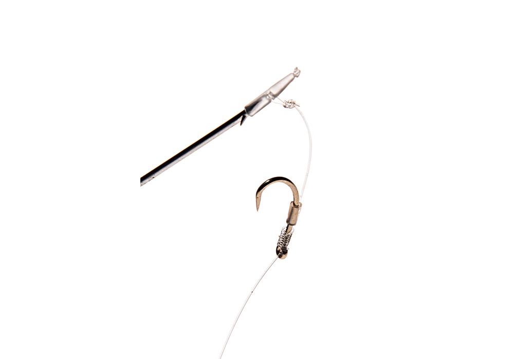 Auch am Haar lässt sich ein einzelner Wurm anbieten: Dazu führt man eine Ködernadel in einen Haken mit Haar und sogenanntem Push-Stop, sticht diesen durch den Wurm und zieht die Ködernadel zurück. Der Push-Stop stellt sich quer und der Wurm befindet sich am Haar. Auf diese Weise angeködert, übersteht der Wurm sogar Weitwürfe.