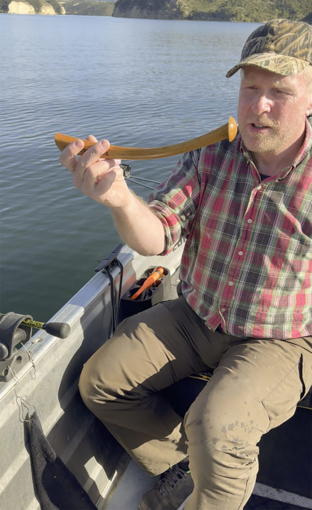 Um die Welse auf den Köder aufmerksam zu machen, kommt ein Wallerholz zum Einsatz. Leicht ist das Klopfen allerdings nicht. Man braucht schon etwas Übung, um ein typisches Klopfgeräusch zu erzeugen.