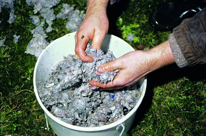 Frischer Mist ist nicht geeignet, wenn man Tauwürmer hältern will! Die oberste Schicht bildet eine Auflage aus mehreren übereinander liegenden Jutesäcken. Diese Jutesäcke werden immer gut feucht, aber nicht tropfnass gehalten. Sollen die Tauwürmer mit altem Laub, Teeblättern, Kaffeesatz oder Gemüseabfällen gefüttert werden, wird das Futter unter die Jutesäcke gelegt.