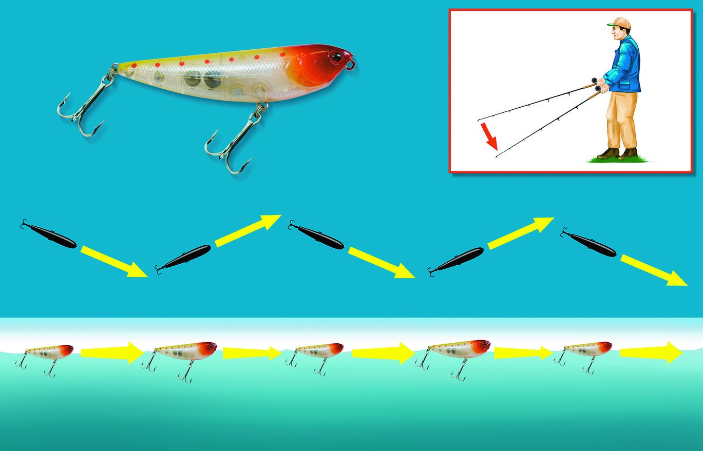 Durch Schläge aus dem Handgelenk erhält der Stickbait seine klassische Walk-the-Dog-Aktion. Aber auch andere Führungsvarianten sind möglich.
