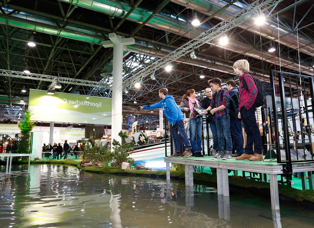 In der Halle 12 – Sportfischer Center der boot 2015 kommen Angelfans, ob Einsteiger oder Profis, mit reichlich Bühnenprogramm, Seenlandschaft für Tests und Europas größtem Drillsimulator voll auf ihre Kosten.