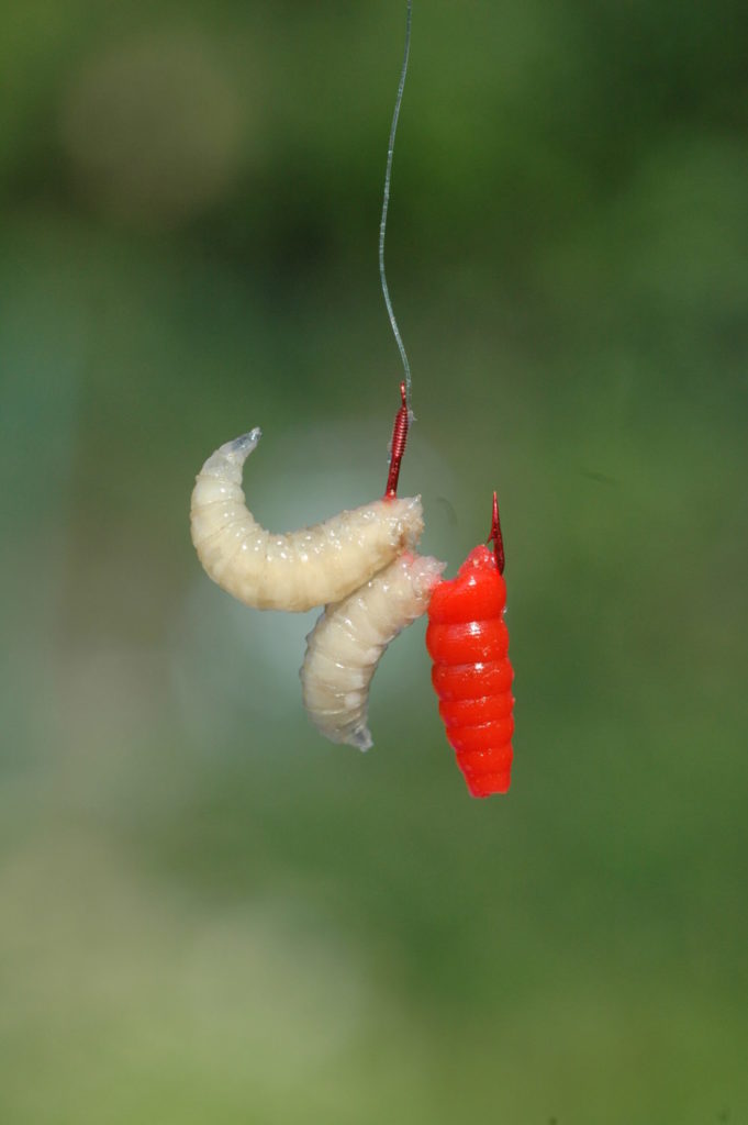 Rote oder gelbe Berkley-Kunstmaden kombiniert mit Naturmaden fangen nicht nur bei Hochwasser am besten.