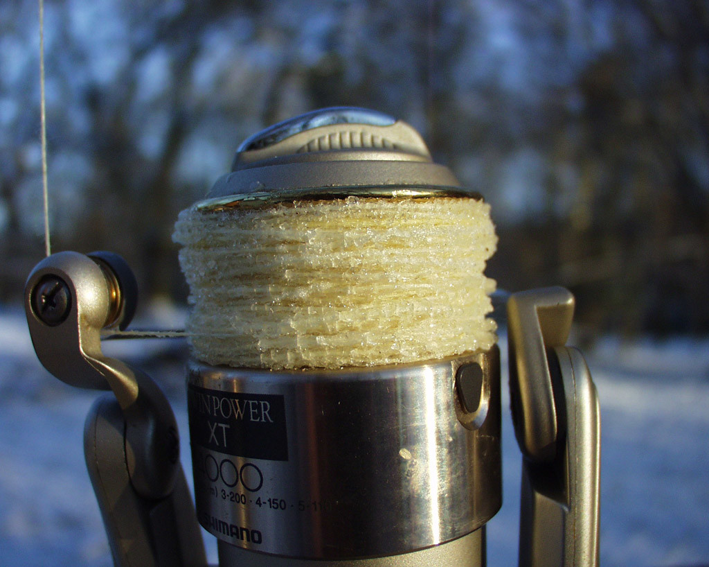 Geflochtene Schnüre saugen Wasser auf, was wiederum bei Frost gefriert. Daher bietet es sich an, mit monofiler Schnur im Winter zu angeln.