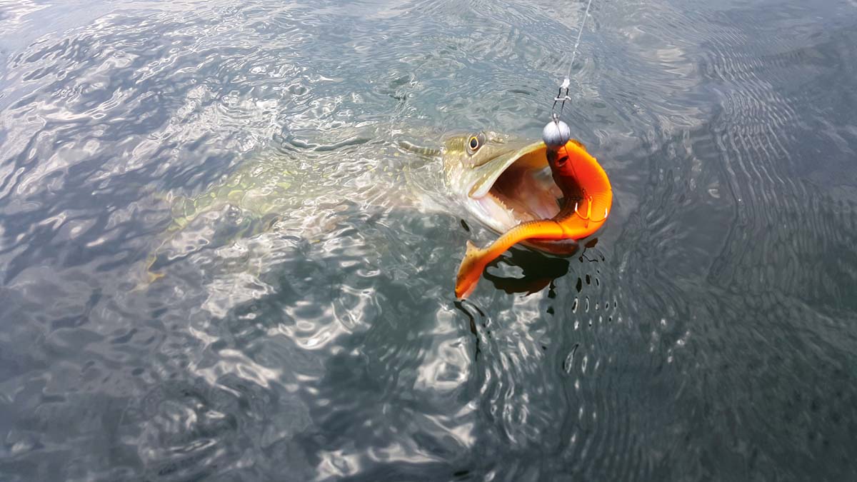 Gummifische gibt es in vielen verschiedenen Formen und Farben. So sind Sie für jede Situation bestens gerüstet. Bei diesem Hecht hat der Jighaken gegriffen – den Stinger hätten wir nicht gebraucht. Foto: J. Pusch