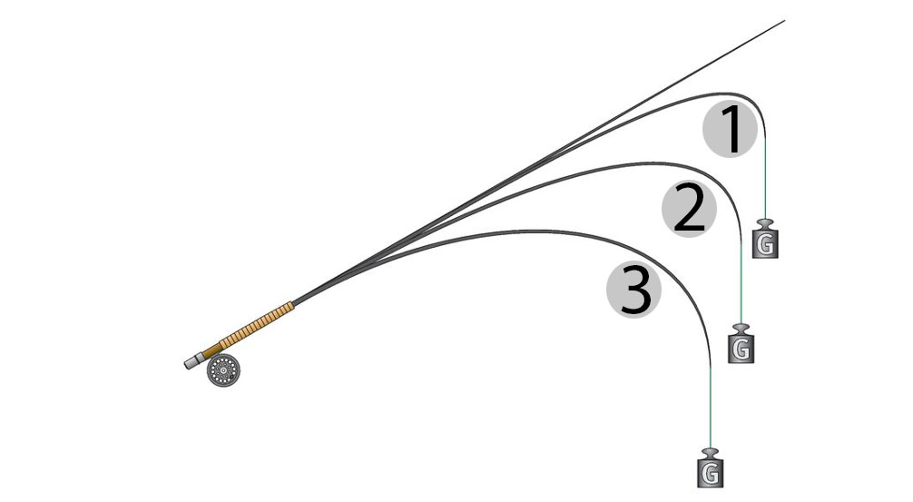 Die Rutenaktion, auch Biegekurve genannt, ist ein wichtiges Kaufkriterium. Darunter ist das Durchbiegeverhalten unter Last, Aufbau und Abbau einer Federkraft gemeint. Unter Belastung gibt es drei Arten der Rutenaktion: