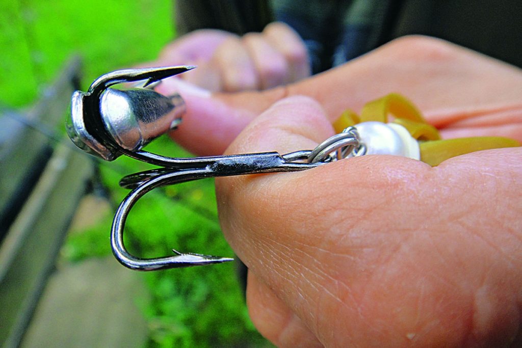 Aufgebogene Angelhaken lassen sich mit einer Zange wieder in Form bringen. Wichtig ist aber, dass die Spitzen noch scharf sind!