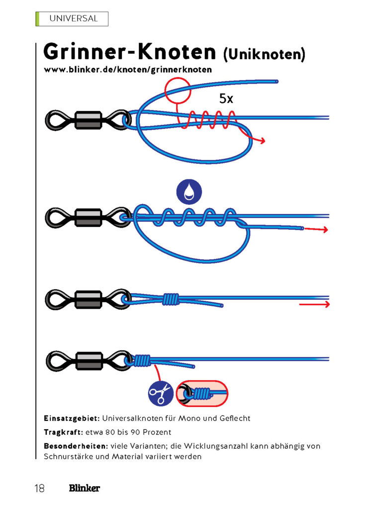 Der Grinnerknoten gehört zu den einfachsten Knoten, um einen Haken oder Wirbel an der Schnur anzubringen. Hier zeigen wir Dir, wie man ihn bindet.