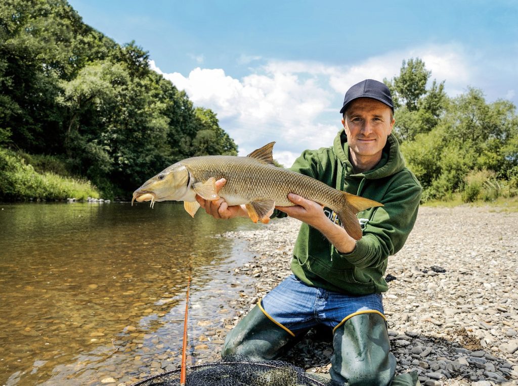 In manchen Bundesländern sind die Barben bis in den Juni hinein geschont. Doch gleich nach der Schonzeit sind die Fische mitten in einem regelrechten Fressrausch. Um sie an einen bestimmten Platz zu gewöhnen, verwendet man geklebte Maden. Um die kapitalen Exemplare aus der Menge der kleineren herauszufangen, sind Heilbuttpellets die beste Wahl. Damit sich die Barben schnell an die Pellets gewöhnen, bietet man diese in einem PVA-Säckchen an, in dem auch die Montage Platz findet.