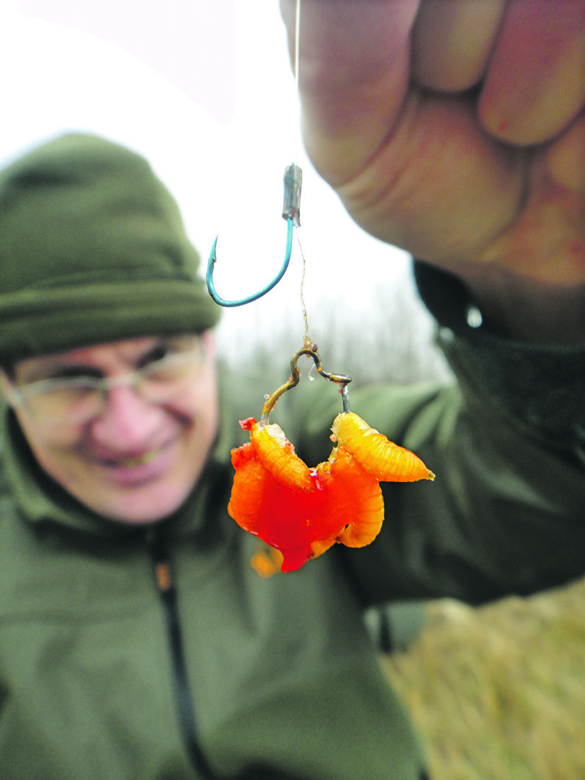 Bei unserem aktuellen Fotoreport sollte es in einem flachen Moorgewässer auf Satzkarpfen gehen. Aber nicht mit Boilies, sondern mit Maden. Statt sie aber ganz klassisch auf den Haken zu ziehen, haben wir einen so genannten „Maggot-Ring“ benutzt. Der kleine Ring ist wie ein Boilie mit einem Haar am Haken befestigt und lässt sich einfach öffnen, um die Maden aufzuziehen.