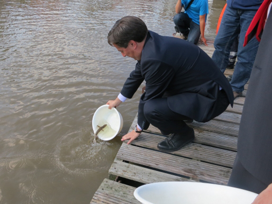 Damit der Stör in niedersächsischen Flüssen wieder heimisch wird, ließ es sich Ministerpräsident McAllister nicht nehmen, selbst beim Besatz mitzuhelfen. Im Rahmen eines Festakts entließ er in Oberndorf den eintausendsten Stör in die Oste.