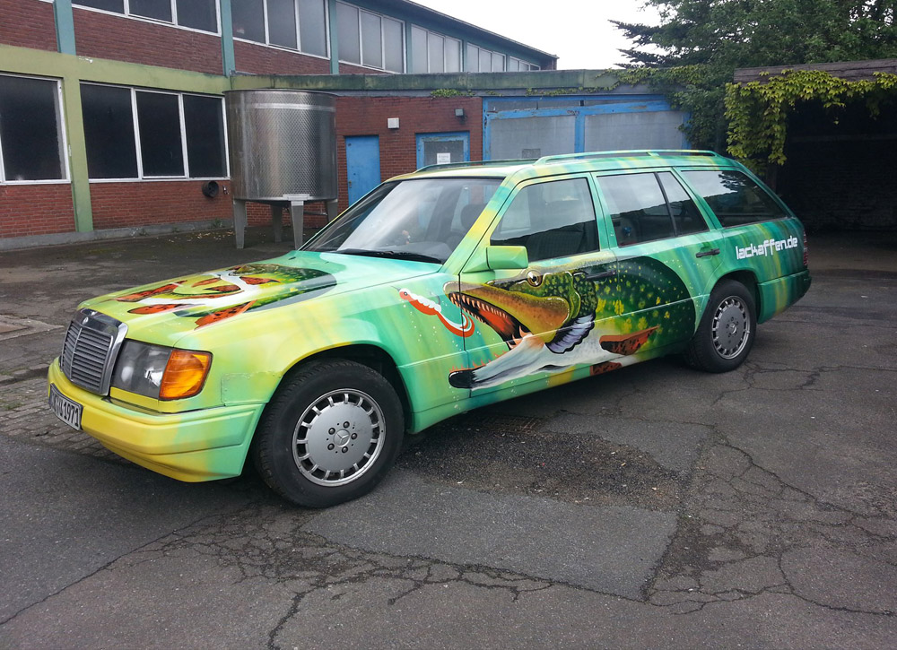 Für einige Angler ist ein Angelauto nicht einfach nur Mittel zum Zweck, sondern ein echter Status-Träger. Da werden mit feinen Airbrush-Techniken detailgetreue Formen und Linien auf den Lack gesprüht, sodass am Ende wahre Kunstwerke aus den Autos werden. Wir haben für Euch ein paar von solchen Kunstwerken aus dem Internet zusammengesucht. Viel Spaß beim Staunen!