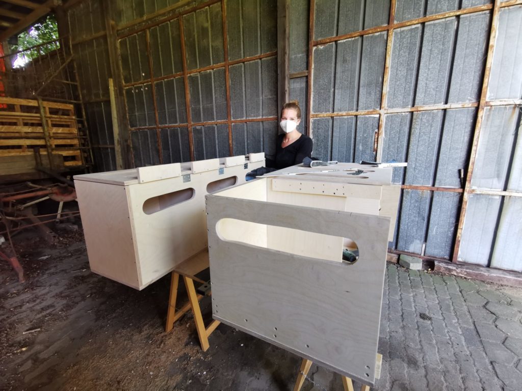Am Freitagabend musste Johannes’ Freundin mit ran und die Campingboxen abschleifen.