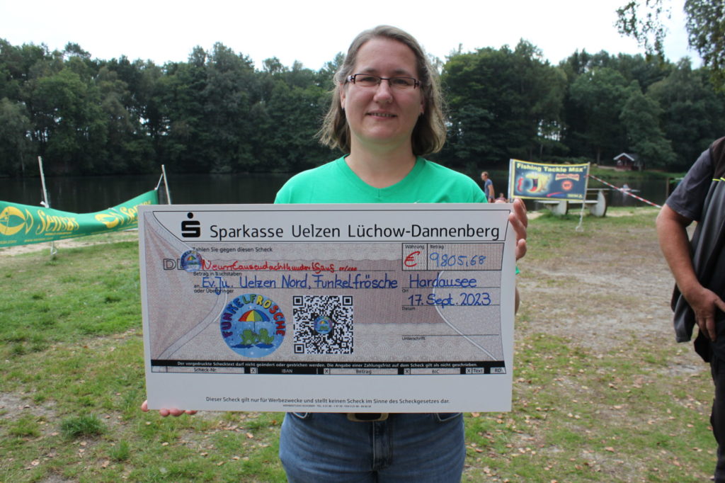 Natürlich stand an diesem Morgen für die Teilnehmer nicht der Fangerfolg an erster Stelle, sondern ausschließlich der gute Zweck. Schließlich wurden sämtliche Startgelder und durch die teilnehmenden Angelvereine des Vereins Bezirk Ilmenau2 zuvor schon gesammelten Spenden am Ende der Veranstaltung der Diakonin Julica Boyken in Form eines Schecks in Höhe von knapp 10.000 Euro übergeben.