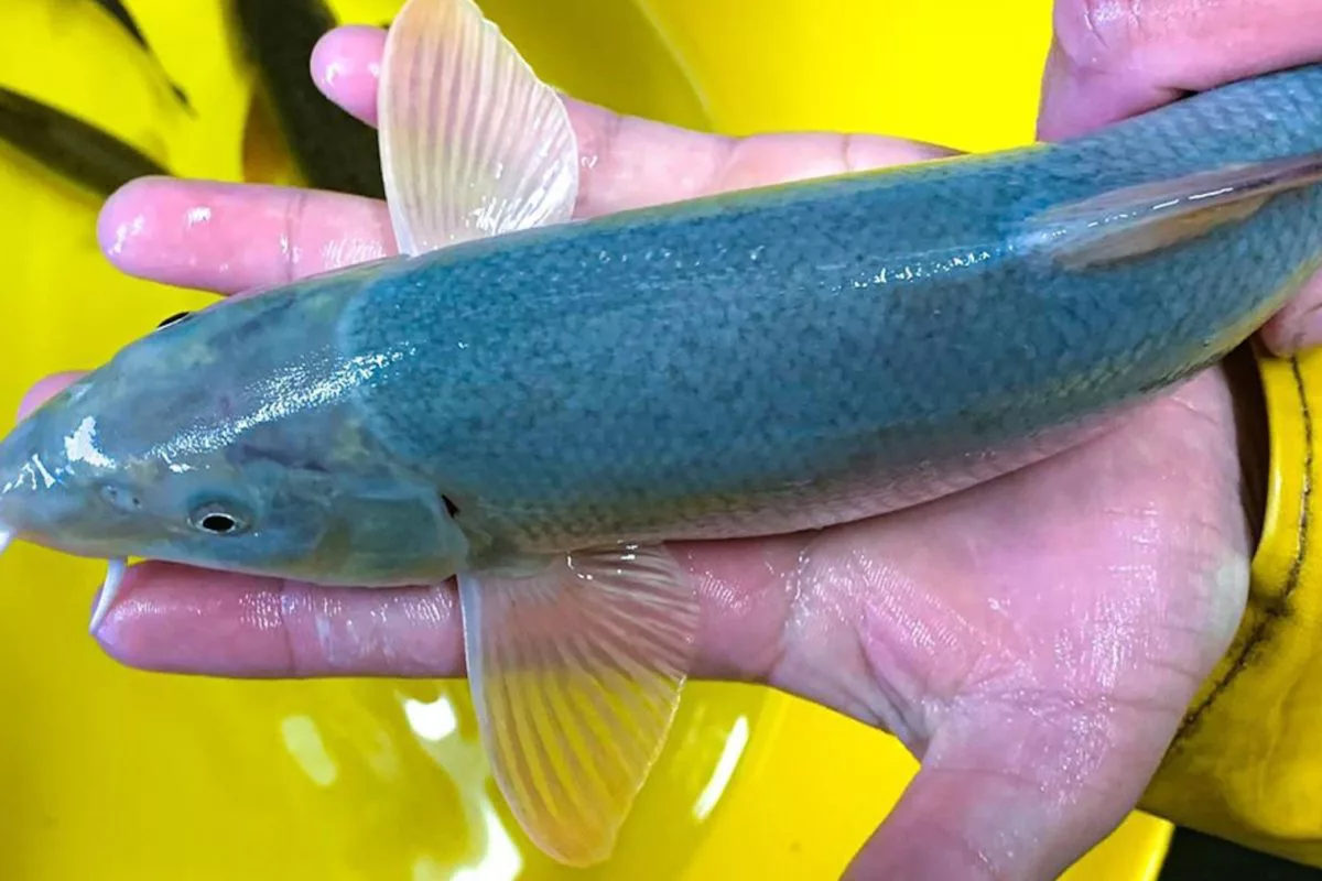 Bei einer Abfischaktion ging Mitgliedern der Environment Agency eine blaue Barbe ins Netz. Das berichtete die Angling Times.