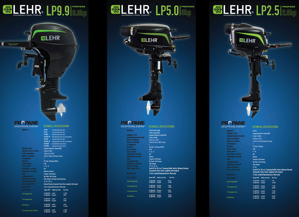 Propan ist schon lange als grüne Energiequelle, die Emissionen reduziert, die Umwelt schützt und unsere Abhängigkeit von Ölimporten vermindert, bekannt. Daher hat die Firma LEHR den ersten mit Propangas angetriebenen Außenbordmotoren der Welt entwickelt. Neben dem Faktor Umwelt ist die geringe Geräuscheentwicklung ein weiterer positiver Faktor, da auf dem Wasser eine geringere Scheuchwirkung ausgeht.
