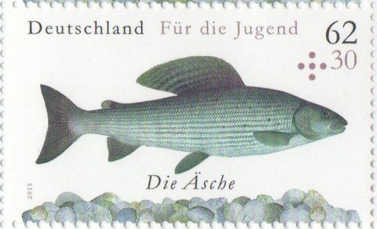 Viele Jugendliche kennen Fische nur noch in Form von Fischstäbchen oder Fish-Nuggets. Briefe schreiben dürfte ihnen allerdings noch weniger geläufig sein… Dennoch (oder gerade deshalb?) hat die Deutsche Post als Motiv der diesjährigen Zuschlagmarken „Für die Jugend“ ausgerechnet ein paar weniger bekannte Fischarten ausgewählt: Äsche (62 + 30 Cent), Barbe (85 + 40 Cent), Stör (145 + 55 Cent). Der Erlös aus den Zuschlägen kommt der Arbeit von Jugendorganisationen zugute.
