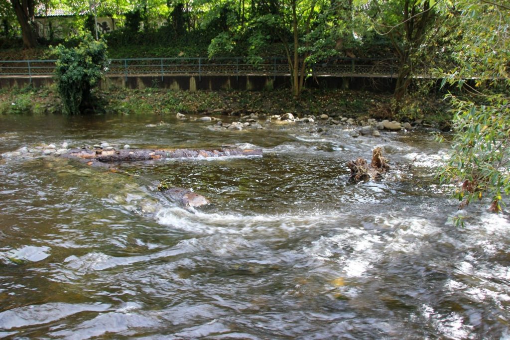 V Buhnen schaffen strömungsberuhigte Bereiche und leisten einen Beitrag zur Revitalisierung der Dreisam.