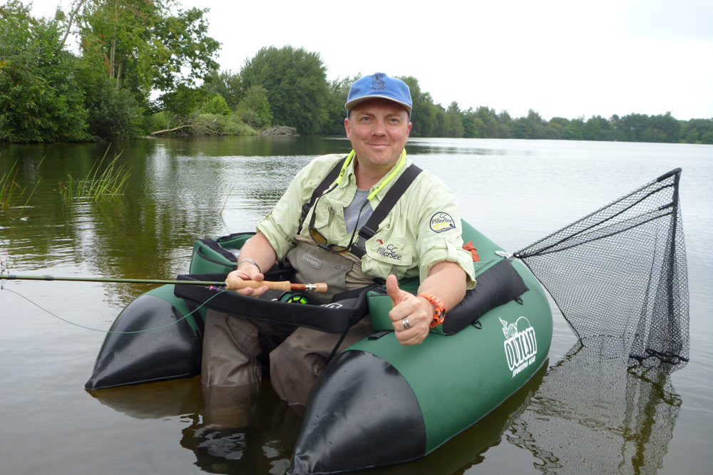 Hendrik Wiegand präsentiert euch auf der Fishing Masters Show das Bellyboat-Angeln. Der seit 36 Jahren erfahrene Fliegenfischer- und Binder vermittelt mit Freude und Leidenschaft sein Können, Tipps und Tricks, was ihm den Namen „The Belly Boat Man“ einbrachte. Foto: FMS