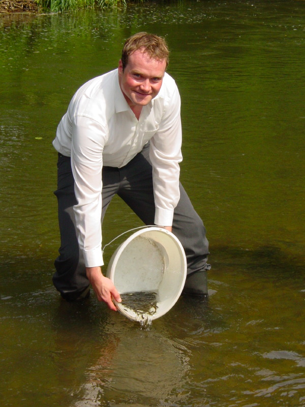 Die Flüsse Nordrhein-Westfalens werden dieser Tage noch lebendiger. Mitarbeiter des Rheinischen Fischereiverbands von 1880 e.V. und des Landesamtes für Natur, Umwelt und Verbraucherschutz NRW (LANUV) haben gemeinsam mit Christoph Heider, Geschäftsführer der HIT Umwelt- und Naturschutz Stiftungs-GmbH junge Lachse in die Untere Bröl besetzt. Die Besatzaktion findet im Rahmen des Wanderfischprogramms NRW und in Abstimmung mit der Sieg-Fischerei-Genossenschaft statt. Jährlich werden insgesamt rund 500.000 junge Lachse in die Sieg und ihre Zuflüsse eingesetzt. Damit wird das Artenschutzprogramm „Lachs“ umgesetzt. Christoph Heider setzte am Mittwoch den 04.Juli 2012 eigenhändig 1.000 Lachse in die Bröl ein. Die Aktion hat Heider begeistert: Ich war ja schon mehrmals bei einer solchen Besatzaktion dabei, vor allem mit den Schulklassen. Aber, dass ich dieses Mal selbst mithelfen darf, die jungen Lachse in die Freiheit zu entsenden, das ist doch etwas Besonderes“, freut sich Heider. Die HIT Umweltstiftung fördert seit sieben Jahren das Lachspatenschaftsprogramm der Stiftung Wasserlauf NRW. Dabei lernen die Kinder die Lebensweise der Wanderfische kennen, sie erfahren etwas über die Lebensbeziehungen in einem Gewässer und über die Bedeutung des Wassers als menschliche und tierische Lebensgrundlage. Als ein wichtiger Unterstützer sichert die HIT Umweltstiftung derzeit mit einer jährlichen Förderung von 15.000 Euro die Durchführung der Lachspatenschafts-Aktionen“, so Frank Molls, Geschäftsführer der Stiftung Wasserlauf NRW. Die Flüsse Nordrhein-Westfalens werden dieser Tage noch lebendiger. Mitarbeiter des Rheinischen Fischereiverbands von 1880 e.V. und des Landesamtes für Natur, Umwelt und Verbraucherschutz NRW (LANUV) haben gemeinsam mit Christoph Heider, Geschäftsführer der HIT Umwelt- und Naturschutz Stiftungs-GmbH junge Lachse in die Untere Bröl besetzt. Die Besatzaktion findet im Rahmen des Wanderfischprogramms NRW und in Abstimmung mit der Sieg-Fischerei-Genossenschaft statt. Jährlich werden insgesamt rund 500.000 junge Lachse in die Sieg und ihre Zuflüsse eingesetzt. Damit wird das Artenschutzprogramm „Lachs“ umgesetzt. Christoph Heider setzte am Mittwoch den 04.Juli 2012 eigenhändig 1.000 Lachse in die Bröl ein. Die Aktion hat Heider begeistert: Ich war ja schon mehrmals bei einer solchen Besatzaktion dabei, vor allem mit den Schulklassen. Aber, dass ich dieses Mal selbst mithelfen darf, die jungen Lachse in die Freiheit zu entsenden, das ist doch etwas Besonderes“, freut sich Heider. Die HIT Umweltstiftung fördert seit sieben Jahren das Lachspatenschaftsprogramm der Stiftung Wasserlauf NRW. Dabei lernen die Kinder die Lebensweise der Wanderfische kennen, sie erfahren etwas über die Lebensbeziehungen in einem Gewässer und über die Bedeutung des Wassers als menschliche und tierische Lebensgrundlage. Als ein wichtiger Unterstützer sichert die HIT Umweltstiftung derzeit mit einer jährlichen Förderung von 15.000 Euro die Durchführung der Lachspatenschafts-Aktionen“, so Frank Molls, Geschäftsführer der Stiftung Wasserlauf NRW.