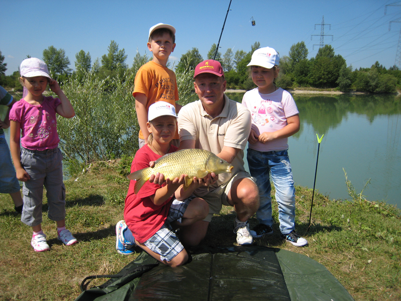 Der Angeltag begann mit wunderschönem Wetter am zur Verfügung gestellten Gewässer. Die von Browning bereitgestellten Angelsets wurden aufgebaut und das vom Angelcenter Amstetten gestellte Futter und Köder wurden vorbereitet. Bereits vor Ankunft der Kinder zeigten sich die Fische beißfreudig. Dann trafen die Kinder ein und teilten sich sofort auf die vorbereiteten Angeln auf. Nach kurzem Erklären, wie man Feederkörbe füllt und den Köder an den Haken bringt, wurden bereits nach kurzer Zeit die ersten Fische gelandet. In dieser Gangart sollte es auch den ganzen Tag hindurch weitergehen viele Fische und hocherfreute Kinder und Betreuer!