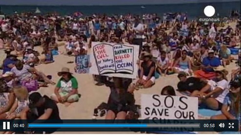 Tausende von Tierschützern sind gegen das umstrittene Gesetz auf die Strasse gegangen. Im westaustralischen Perth schwenkten 6.000 Demonstranten Plakate mit dem Slogan: Lasst die Haie leben! Ein Tierschutz-Aktivist kettete sich an ein Fischerboot, um es am Auslaufen zur Hai-Jagd zu hindern. K.K.