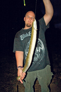 AW © Nachtangler mit 73er Aal. Solche Fänge müssen auch im Emsland weiterhin möglich sein.