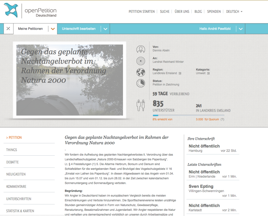 Wenn auch Sie verhindern wollen, dass das Angeln im Emsland nicht an Stellenwert verliert, geht es hier zur Petition.