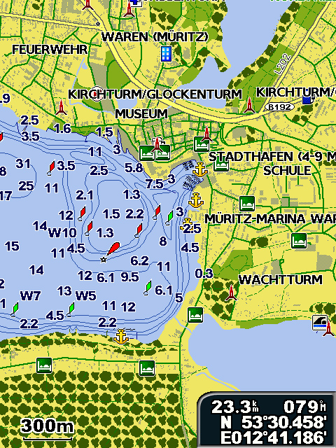 Die Firma Garmin bringt mit der Binnengewässer Nord-Ostdeutschland V2 eine neue Version der digitalen Binnengewässerkarte für Sportbootschiffer auf den Markt. Die deutlich erweiterte Abdeckung umfasst jetzt auch die Gewässer um Berlin, die Märkische Seenplatte und die Peene. Neben den im Marinebereich wichtigen Tiefenangaben liefert die Karte viele weitere Informationen: Navigationshilfen wie Bojen und Leuchtfeuer, Schleusen und Wehre, Verbotszeichen und Geschwindigkeitsgebote.