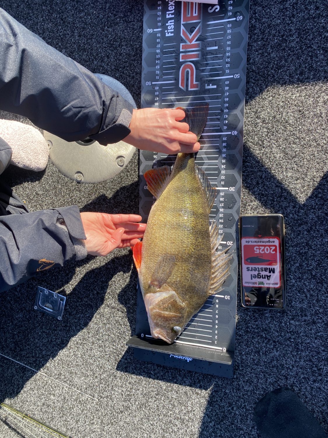 Damit eure Fänge bei der „Blinker-Hitparade“ und beim „Fisch der Woche“ in der AngelWoche berücksichtigt werden können, ist neben dem Fangfoto immer ein zusätzliches Beweisfoto mit Maßband erforderlich. Und bei den AngelMasters noch zusätzlich ein aktuelles AngelMasters-Logo als Aktualitätsbeweis. Wichtig ist, dass Fisch und Maßband so fotografiert werden, dass die Jury die Länge einwandfrei ablesen kann. Also idealerweise wird der Fisch senkrecht von oben fotografiert, so dass es keine Perspektiv-Verschiebungen gibt. Optimal sind breite Maßbänder mit Anschlag.