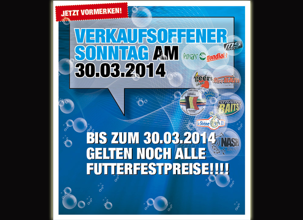 Sie haben am 30. März noch nichts vor? Dann machen Sie doch einen Ausflug nach Kaltenkirchen und lassen sich den verkaufsoffenen Sonntag bei Angelsport Moritz Nord nicht entgehen.