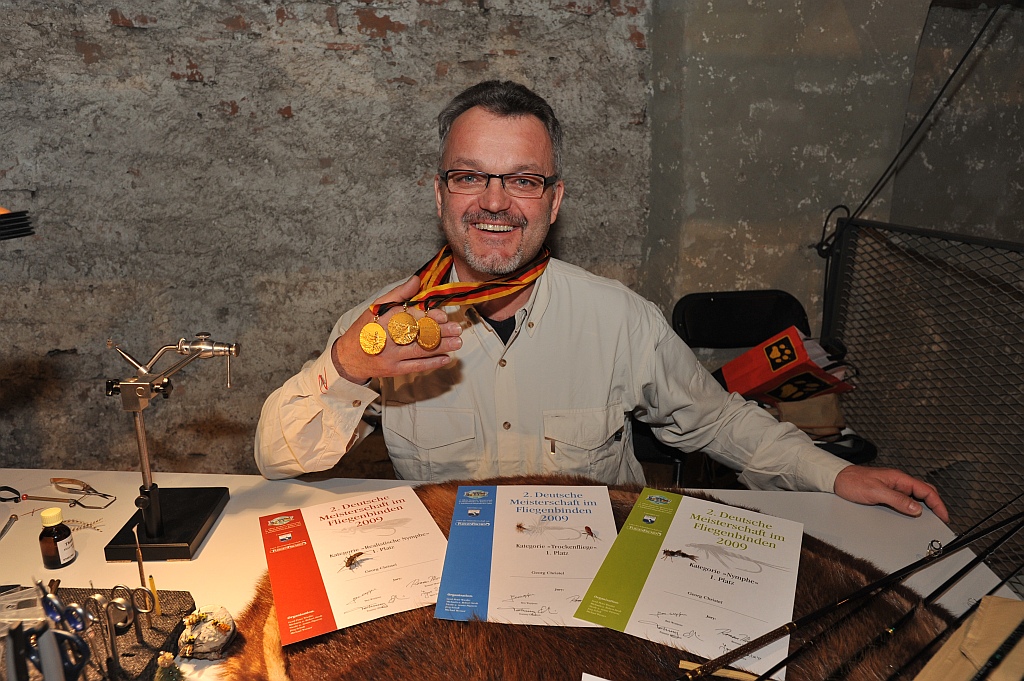 Bei den Gewinnern der 2. Deutschen Bindemeisterschaft, die dieses Jahr im Rahmen der EWF 2009 ausgetragen wurde, fiel ein Binder besonders auf – Georg Christel gleich erhielt drei mal den ersten Platz für seine Fliegen. Im Anschluss finden Sie seine „Gewinnmuster“…