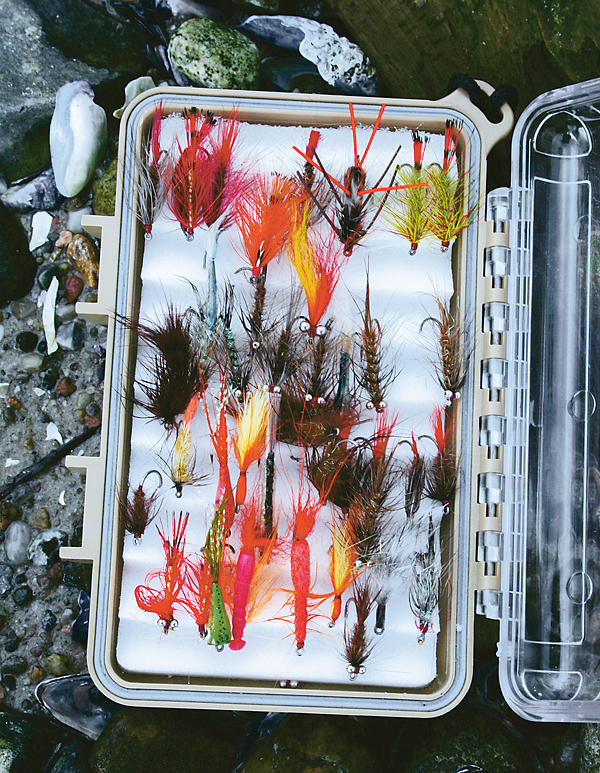 Die orange-gelben Fliegen werden bei normalen Bedingungen gefischt, die brauen Fliegen im klaren, ruhigen Wasser. M. Werner