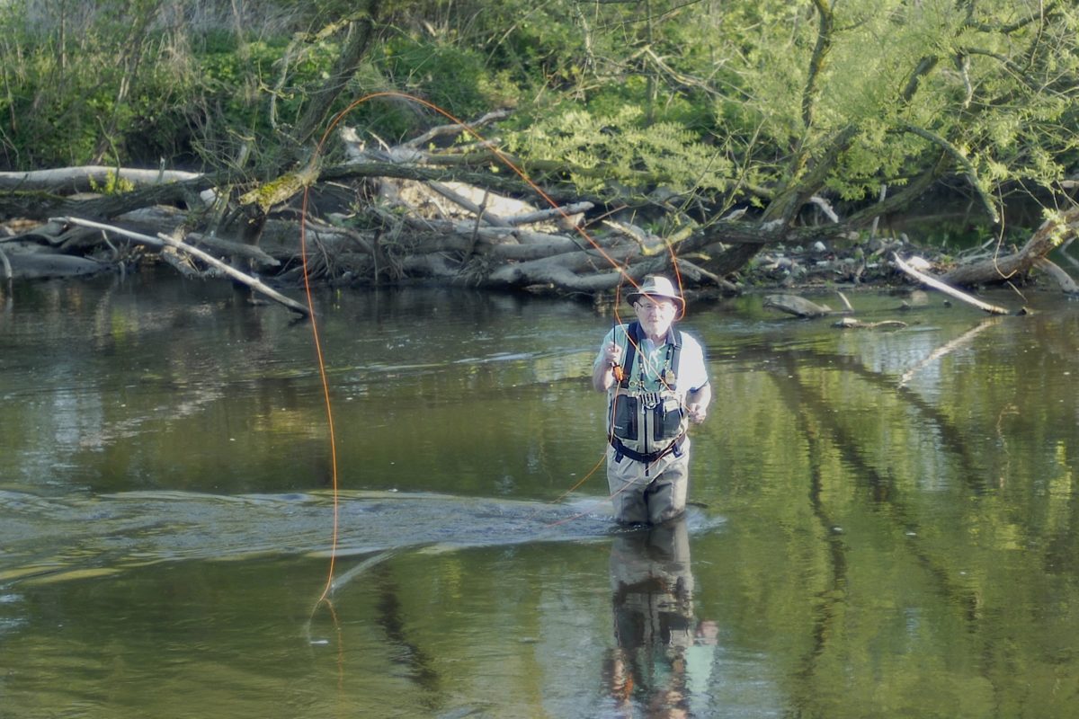 FliegenFischen-Autor Detlef Henkes beim „Wurf-Spiel“ – auch so kann man das Fliegenfischen selber lernen. Ab einem gewissen Niveau und mit dem entsprechenden Bewegungstalent ist man durchaus in der Lage, sich selbst Trickwürfe anzueignen.