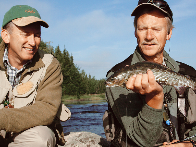 Einen Guide buchen? Nee, das geht auch so! Mein Freund Reinhold ging anders vor. Er reiste zum ersten Mal zum Fliegenfischen nach Norwegen und zwar in der für ihn beruhigenden Gewissheit, vor Ort Hilfe durch einen Guide namens Snorre zu bekommen. Snorre so zeigte sich bald ist mit dem Angeln an seinem Fluss, dem Trysil, so verwachsen, dass er Tipps auf Lager hat, über die man als Fremdling nur staunen kann. Schon bei der Ankunft beginnt der Service: Heute nacht ist der Wasserstand um 18 cm gefallen. Das ist gut. Dann können wir es wagen, eine große Strecke mitten im Fluß zu waten. Ich bringe dich da hin! Hast du einen Watstock? Äh, nein, sagt Reinhold. Bring ich mit. Also, 14 Uhr am Fluß, an der Hütte. Dann gehts los.
