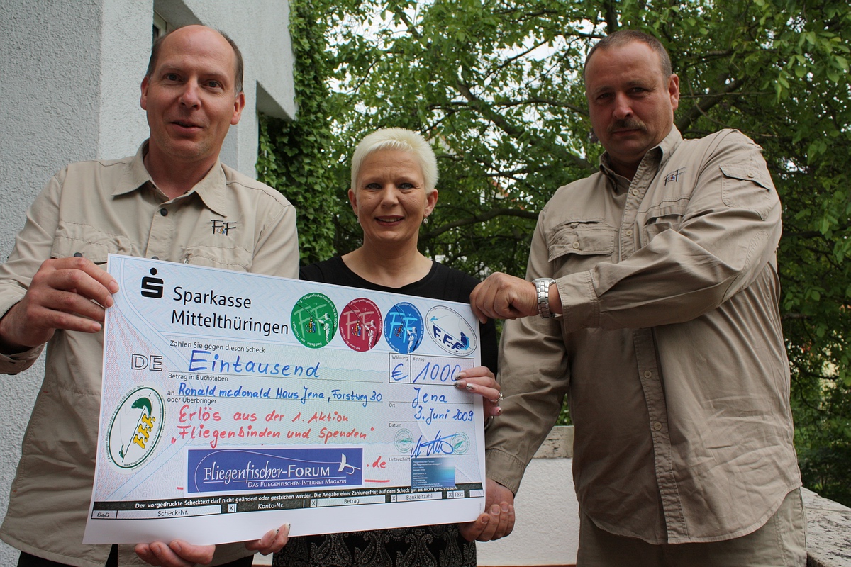 Anfang Juni überreichten Vertreter des Onlinemagazins „Fliegenfischer-Forum.de“ und des Ilmtal-Fliegenfischer e.V. Bad Berka Michael Müller und Olaf Müller eine Spende in Höhe von 1.000 Euro an das Ronald McDonald Hauses in Jena, einer Einrichtung, die sich der Hilfe schwer kranker Kinder und deren Familien verschrieben hat und die jede Spende dringend benötigt.