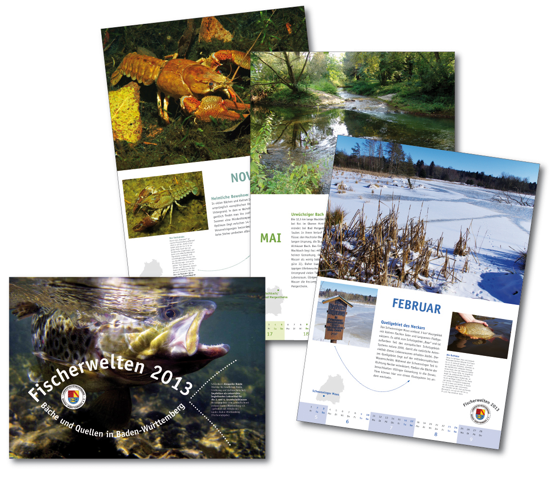 Nach der sehr erfolgreichen Resonanz in den letzten Jahren hat der Landesfischereiverband Baden-Württemberg auch dieses Jahr wieder einen Bildkalender zum Lebensraum Wasser aufgelegt.Er ist mehr als nur ein optischer Wandschmuck, denn der Kalender kommt als Unterrichtsmaterial an den Schulen zum Einsatz.