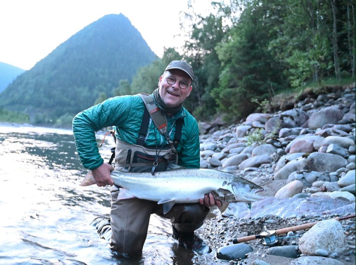 Thomas Junker fing den dritten Lachs der Saison 2024 an der Gaula. Der Fisch hate eine Länge von 95 cm und wog 9 kg.