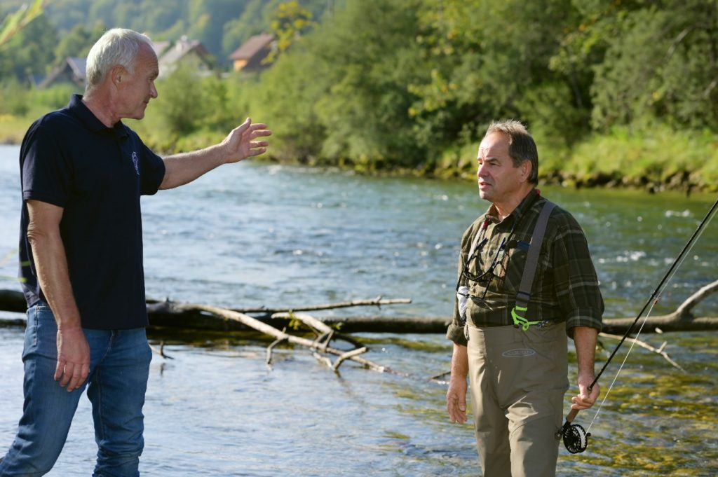 Heimo Huber (r.) im Gespräch mit Christof Petter, dem Initiator von „Traunrauschen“.