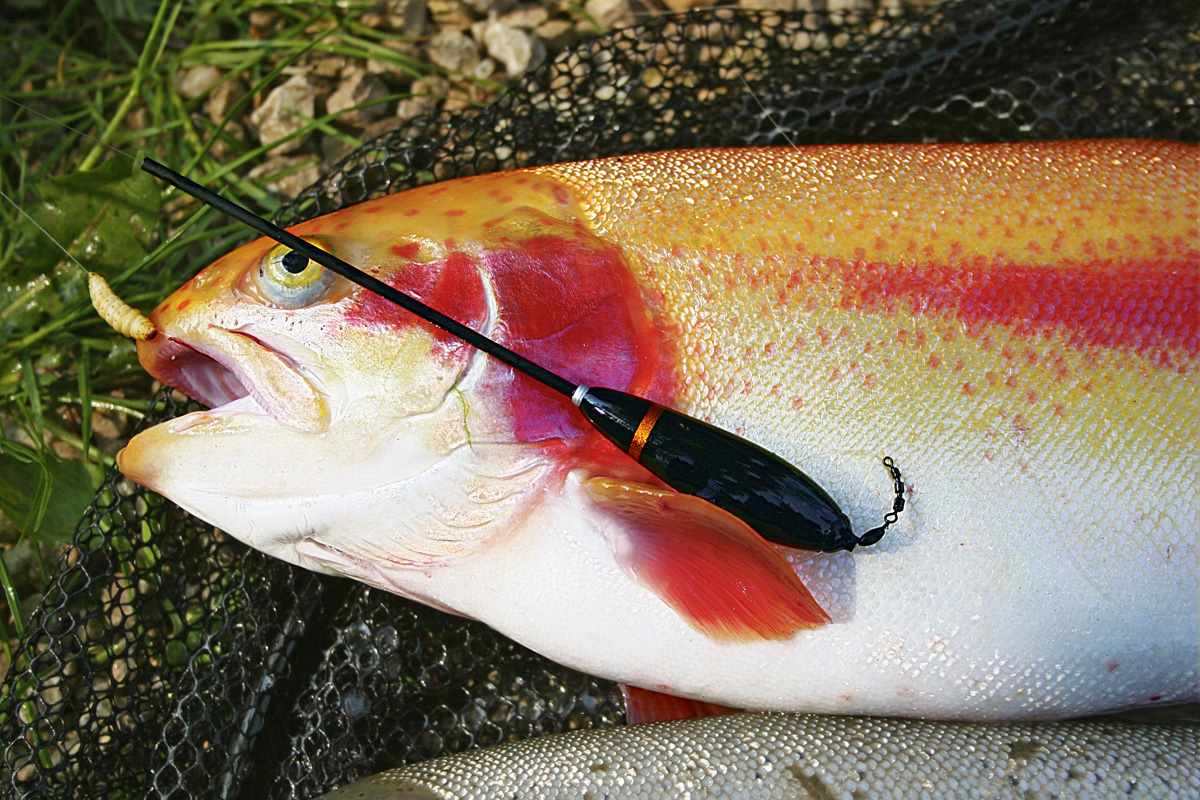 An kalten Tagen zeigen sich die Fische eher verhalten. Kleine tierische Happen, wie Bienenmaden, kleine Würmer, Maden oder auch Rogen stillstehend an der „Posenmontage“ oder besser noch an der „Auftreibenden Montage“ angeboten, punkten aber trotzdem. Wichtig für den Fangerfolg ist es allerdings auf jeden Fall die Fresshöhe der Forellen heraus zu bekommen.