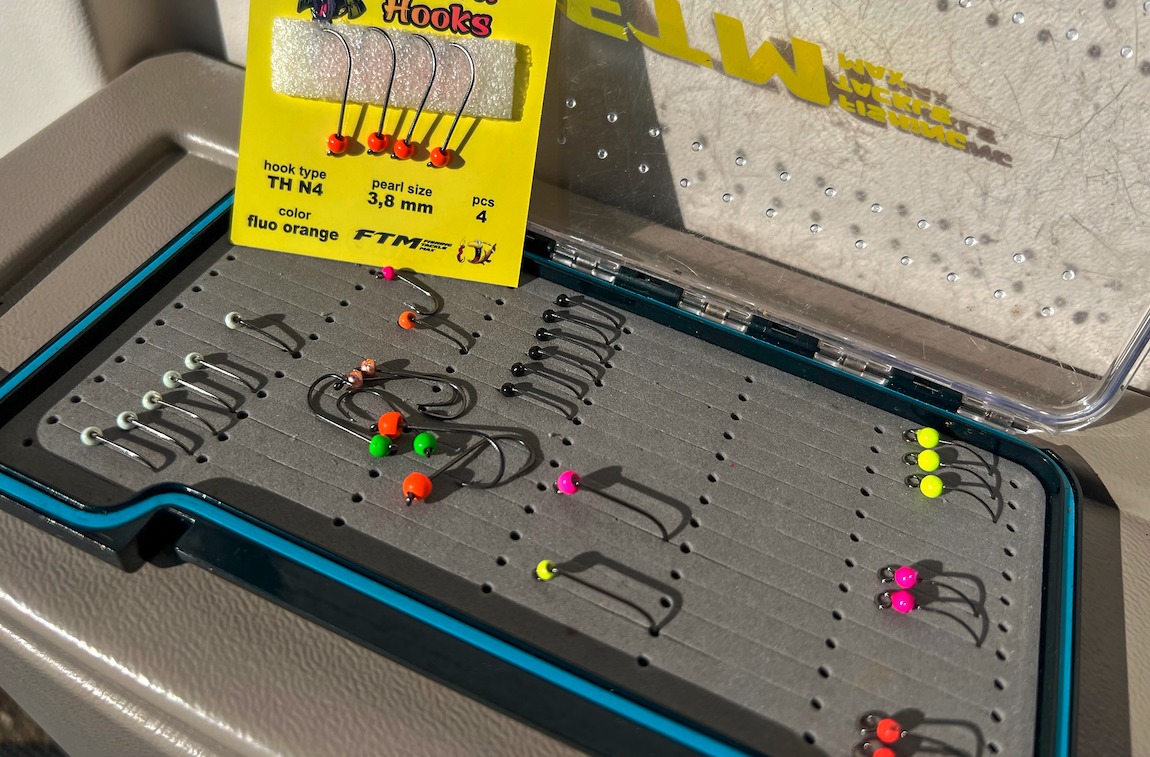 - Experimentieren: Wechselt ruhig mehrmals die Gewichte (Tungstenperlen am Haken) um verschiedene Sink- bzw. Schwebephasen zu testen.