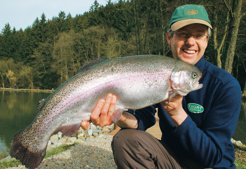 auf Regenbogenforellen, Riesen-Lachsforellen, Goldforellen und Störe im