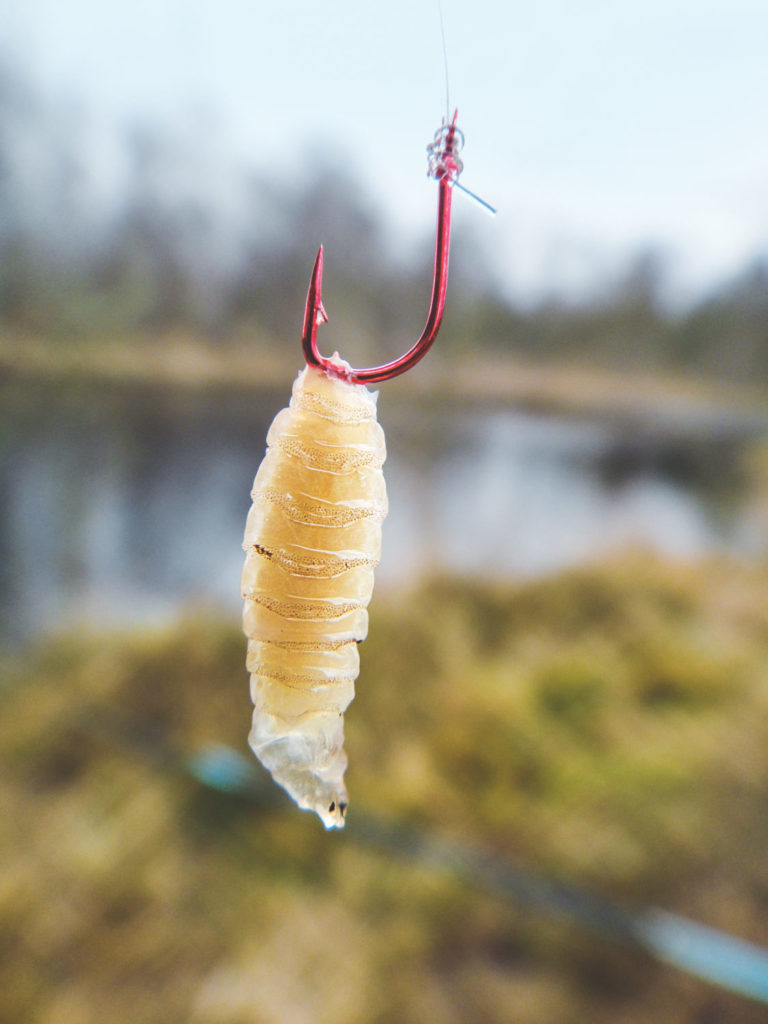 Maden sind sehr empfindlich und können daher beim Anködern schnell aufplatzen. Dadurch bewegen sie sich dann unter Wasser am Haken nicht mehr so gut. Ultrascharfe, dünne Haken sind daher Pflicht, um die Larven sauber durchstechen und präsentieren zu können.