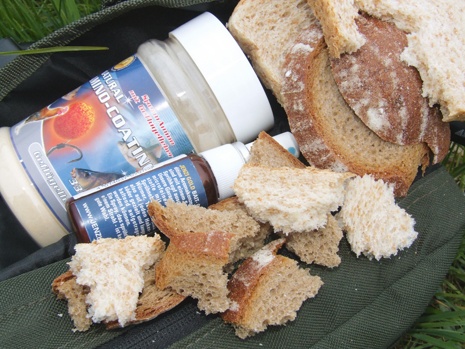 Brot hat einen intensiven Eigengeruch. Man kann es vor dem Angeln aber auch zusätzlich mit Lockstoff versehen, zum Beispiel mit einem Spray. Oder man packt einige Brotwürfel in eine verschließbare Dose oder ein Glas, gibt einige Sardinen-Stücke hinzu und lässt das Ganze über Nacht stehen. Am nächsten Tag hat man dann Brot mit Sardinen-Flavour. Brot lässt sich auch färben. Wenn auf herkömmliches Brot nichts beißt, hilft zum Beispiel oft der Griff zu algenähnlich eingefärbtem Grünbrot.