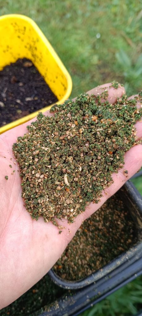 Als Futter kommt ein leichtes, dunkel gefärbtes Futter zum Einsatz. Dieses ist leicht übernässt und nachträglich mit Sämereien ergänzt. Das Futter hat so eine passive Basis, jedoch wird ein zusätzlicher Reiz durch aktiv arbeitende Teilchen der Sämereien erzeugt. Die kleinen Brassen werden so schnell aufmerksam. Ein kleiner Tipp: die zusätzlichen, aktiv arbeitenden Partikel während des Angelns nach und nach hinzugeben, um zu sehen, wie die Fische darauf reagieren.