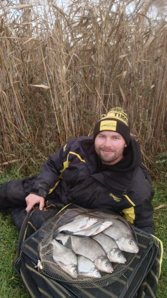 Und tatsächlich die erste Bewegung zeichnet sich nach 20 Minuten an der Feederspitze ab. Eine Kombination aus einem kleinen Rotwurm mit einer toten Made hat den ersten kleinen Skimmer zum Anbiss überzeugt. Ein ständiges Ausprobieren der Köder und das Kombinieren bringt immer wieder einen neuen Reiz und so den nächstes Fisch. So macht das Feedern auch bei kalten Temperaturen Spaß! Alles der Jahreszeit angepasst , wenig Equipment mit am Wasser und kleinen Dosierungen von Köder und Futter, sind auch im Winter vielversprechend und erfolgreich.