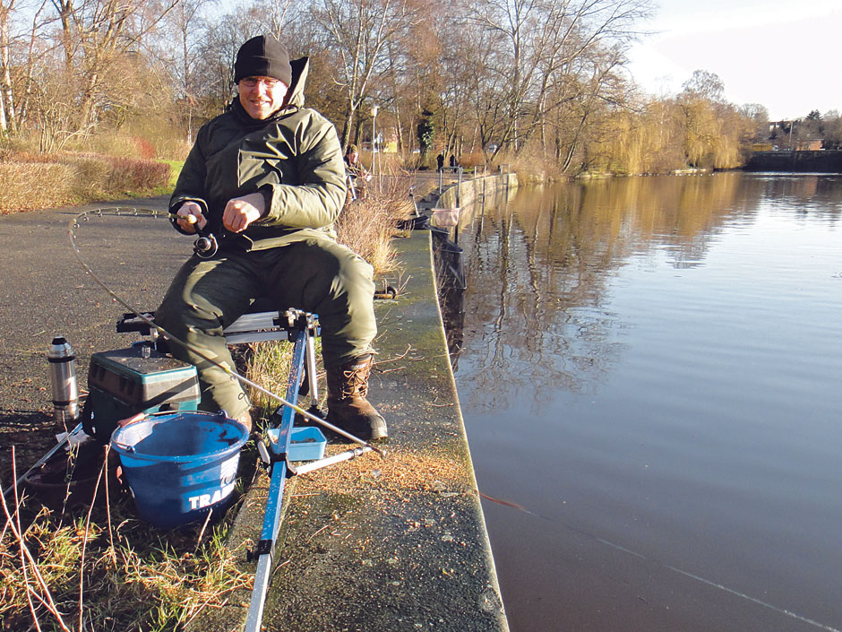 Eigentlich war für den Foto-Report ein Duell zwischen Waggler und Futterkorb geplant. Wir wollten einfach mal wissen, welche Vor- und Nachteile die Methoden im Winter haben. Wir hatten uns dafür die Breite Stelle eines langsam fließenden Kanals ausgesucht, wo Stipper eine Woche zuvor schon gut gefangen hatten …
