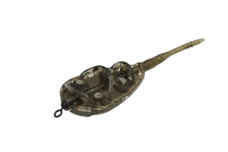 Es gibt fertig vorbereitetes Futter für den Feeder zu kaufen. Aber das Geld müssen Sie nicht zwingend ausgeben. Sie können es ebenso gut selbst machen – einfaches Groundbait oder Mini-Pellets anfeuchten, stehen lassen, ein Flavour ihrer Wahl beimischen und fertig. Der Korb wird mit klebrigem Grundfutter oder auch vorgeweichten Micro-Pellets gefüllt. Die feuchten Pellets entwickeln auch eine starke Klebkraft. Dann gibt man ein wenig des Futters in eine spezielle Plastikform („Method Mould“) und presst dann den Korb ins Futter. Es entsteht ein sauber geformter Futterhügel auf dem Korb. Zwingend nötig ist die Plastikform aber nicht, Sie können das Futter auch mit der Hand um den Korb kneten.