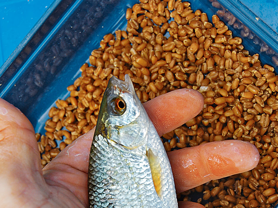 Jeder Rotaugenspezi weiß, dass Hanf, Weizen und Mais zu den besten Winterködern gehören. Das mag im ersten Moment merkwürdig sein, muss doch der Organismus zum Verdauen von pflanzlicher Nahrung viel mehr Energie aufwenden, als bei tierischer Nahrung. Aber: Wir bieten die Körner ja nicht roh an, sondern gekocht und gequollen. So zubereitet steigt die Verdaulichkeit enorm an, und dem Fisch steht die Energie schneller und über einen längeren Zeitraum zur Verfügung. Allerdings hängt auch hier die Ködergröße von der Wassertemperatur ab: Bei warmem Schmuddelwetter kann man gut mit Mais angeln, doch bei sinkenden Temperaturen wirken kleine Weizen- und Hanfkörner besser.