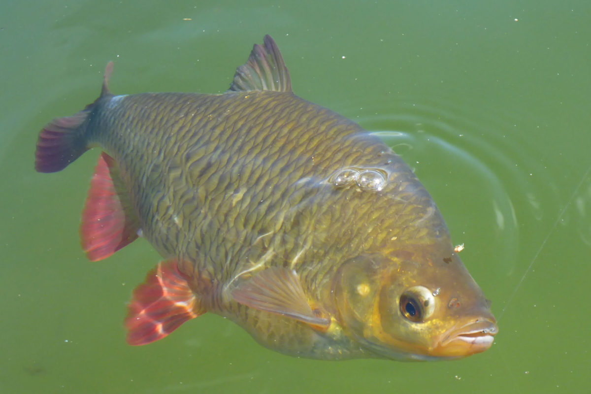 Diese Rotfeder lebt räuberisch und kam an einem Barschjig nichht vorbei.